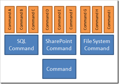 In my application there will be a base Command abstraction that will form the base of more repository specific classes of Commands. Each of these repository specific classes of Commands would have understand how to connect and communicate with repositories of a specific type, e.g. SQL repositories, SharePoint repositories, File System's etc.